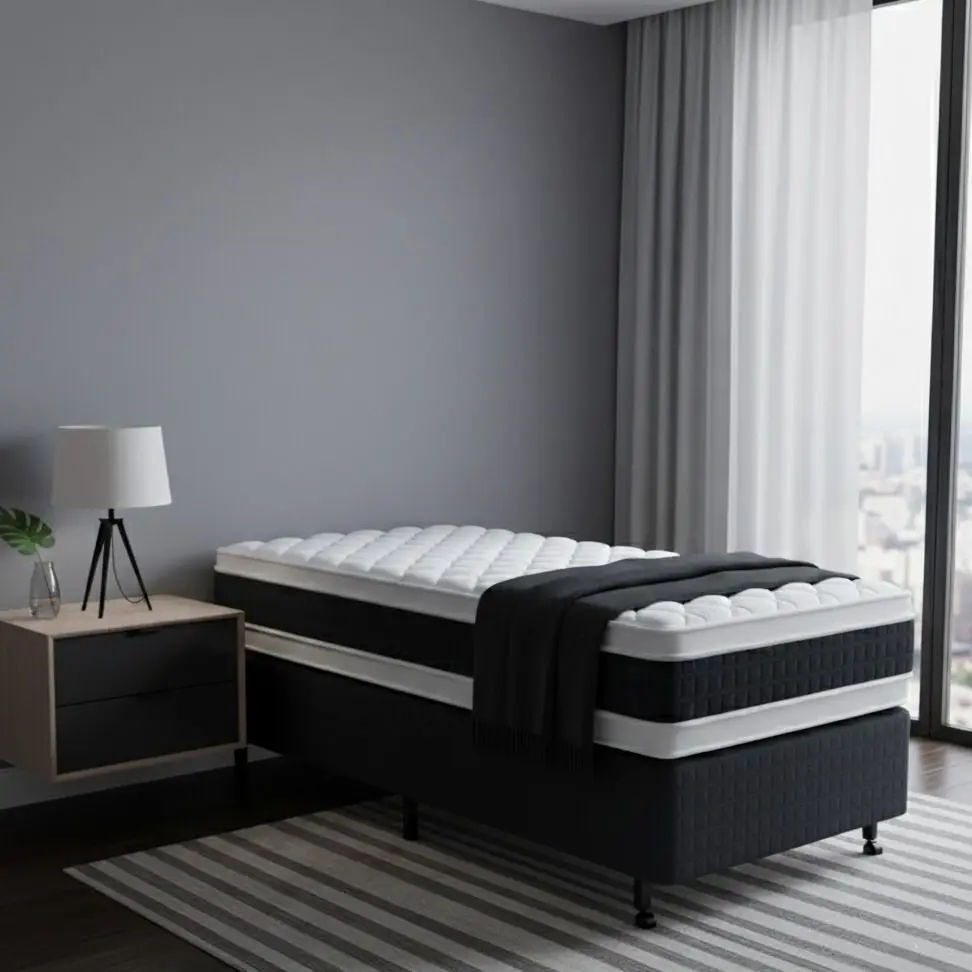 Cama Box + Colchão Solteiro Viúva Five Star Air Double Face Pocket 78x188x61cm